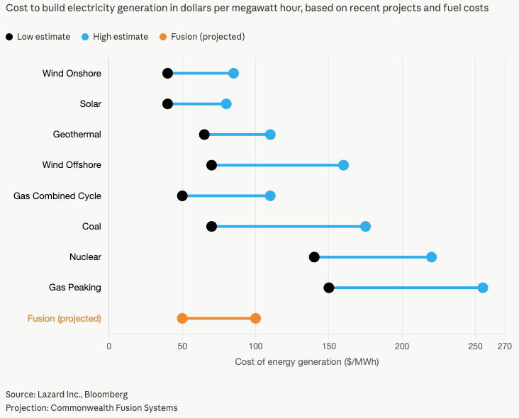 For fusion to win long‑term power purchase agreements, it has to compete within that landscape. As Commonwealth Fusion’s Bob Mumgaard has argued, fusion must deliver energy at around $50/MWh to achieve broad adoption. Fusion’s 24/7 baseload advantage is real, but it won’t matter if the energy costs two to three times more than alternatives.