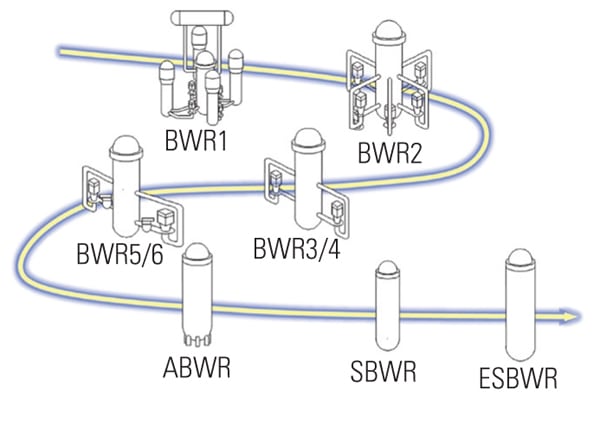 2. Certified design. The ABWR design uses modern digital controls and places the recirculation pumps inside the containment vessel. Source: Tokyo Electric Power Co.
