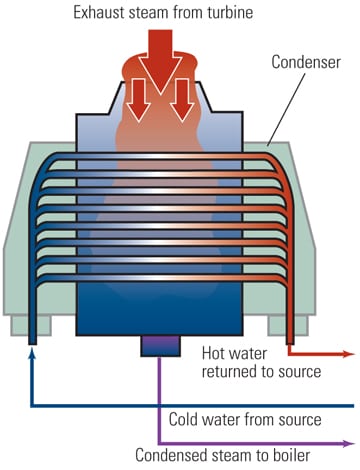 Power plants consume a lot of water. Whether it’s a nuclear, coal, biomass, fuel oil, natural gas combined cycle, or a solar plant in some cases, water is flashed to steam as part of the power generation process. The steam is then condensed into hot water and returned to a cooling loop.